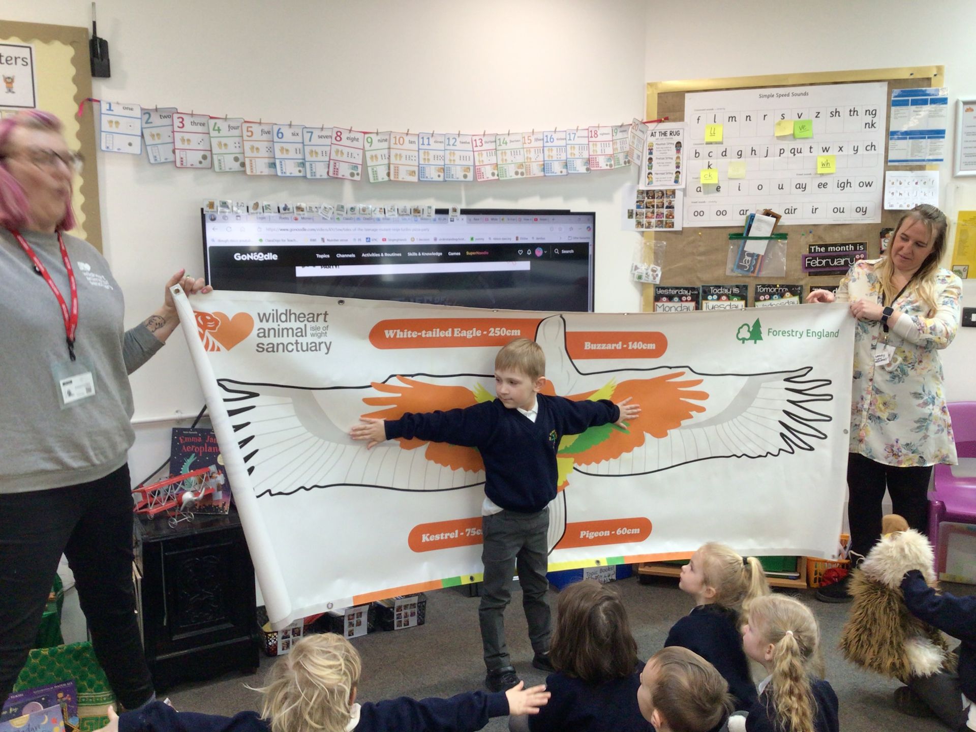 We were all amazed when Emma showed us how incredibly wide a white tailed eagles wingspan is! We compared it against our own 'wingspan' and even Ms South's was shorter than a white tailed eagle!