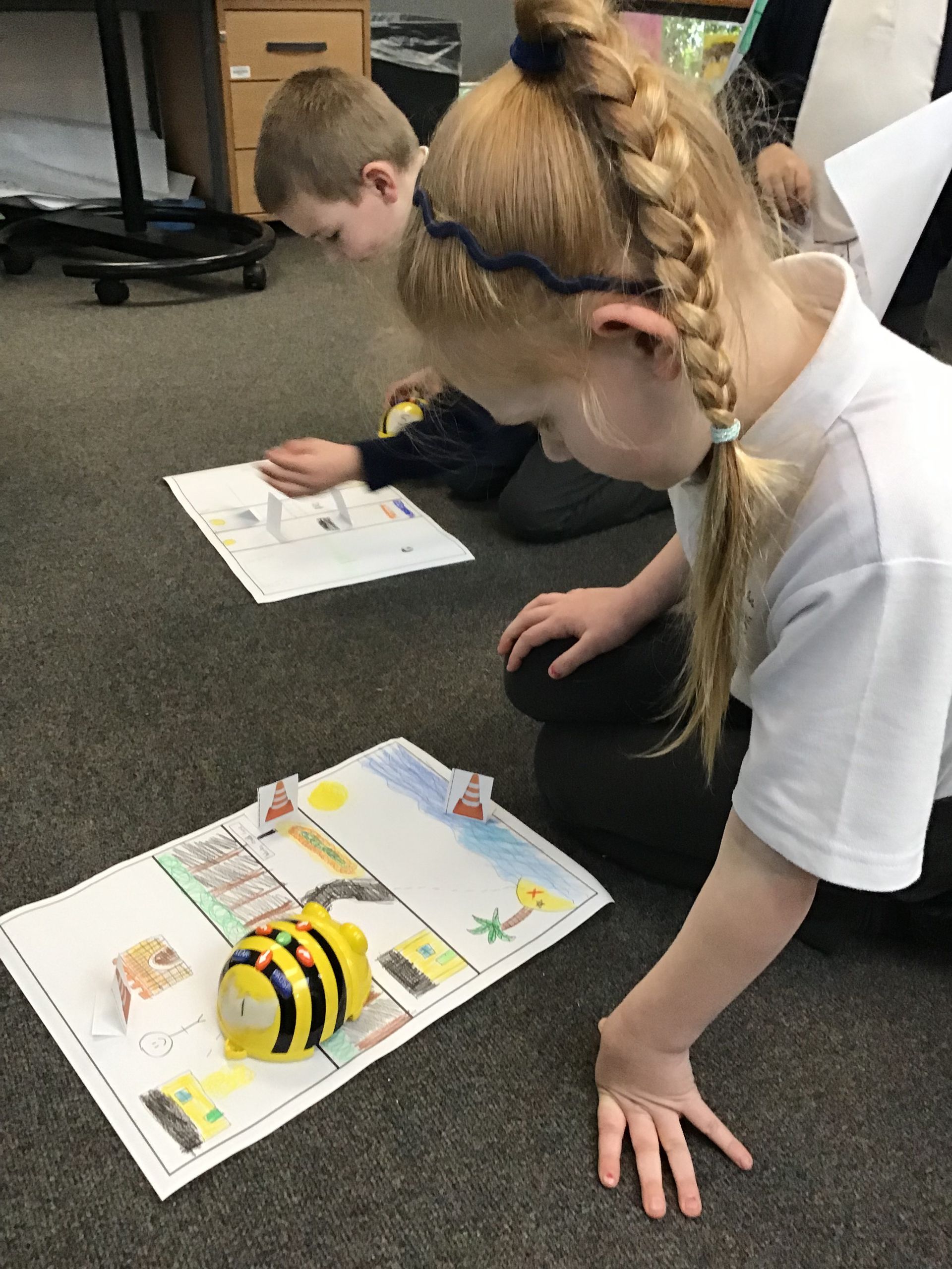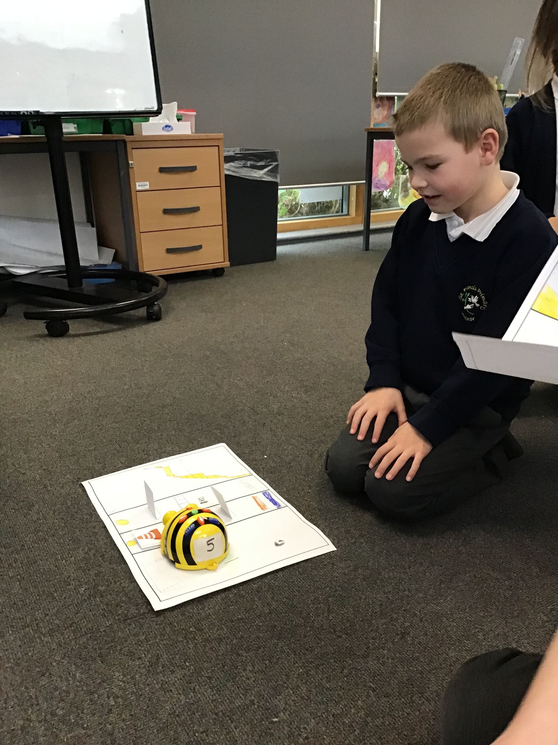 We have also been creating a mat for our Bee-Bots in computing this week. Once we made our mats, we used the Bee-Bots to discover a sequence. After that we added obstacles and then created a sequence to go around them.