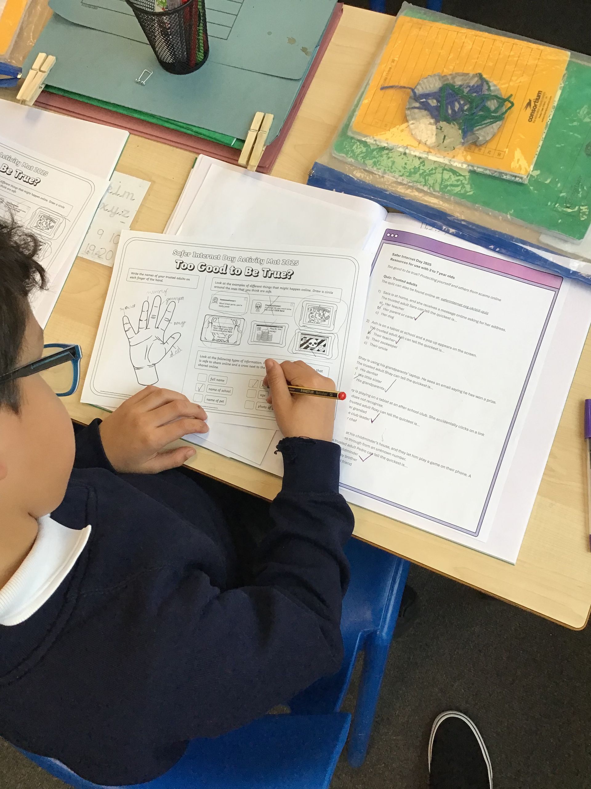 We did a quiz on who our trusted adult are if we were worried and then did an activity sheet on what information we shouldn’t put online and what a scam looks like.