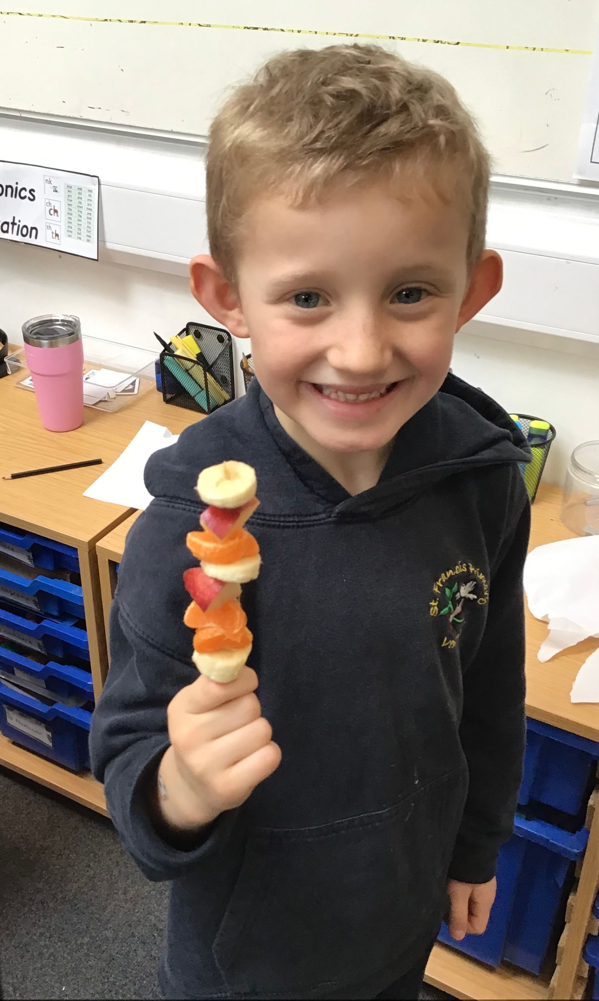 In English we have also been learning how to write instructions. On Thursday we made fruit kebabs to then eat and then we were able to write the instructions on how me made them! We used command words such as cut, slice, peel and wash. We used Adverbs such as carefully, slowly and quickly. We wrote in chronological order using words such as first, next, after that and lastly. We also have been learning how to add conjunctions such as and, because, or and so.