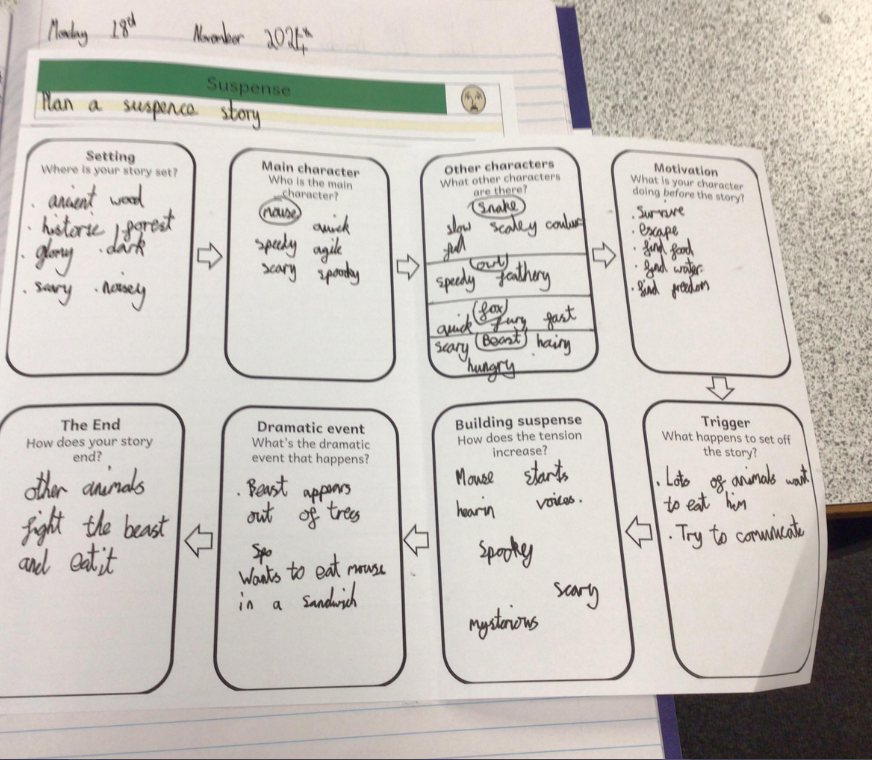 We've also been busy writing suspense stories. We based our first story on an extract from 'Little Women' in which pickled limes set off Amy's teacher Mr Davis. Our stories involved characters from Hogwarts, a magical unicorn school and even the inventors of Prime!
