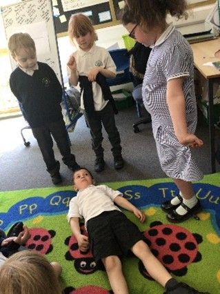 On Tuesday, the children heard the story of the healing of the paralysed man, learning about the Sacraments of Healing and Forgiveness. They made their own character and re-enacted the story in groups, talking about how the different people in the story felt.